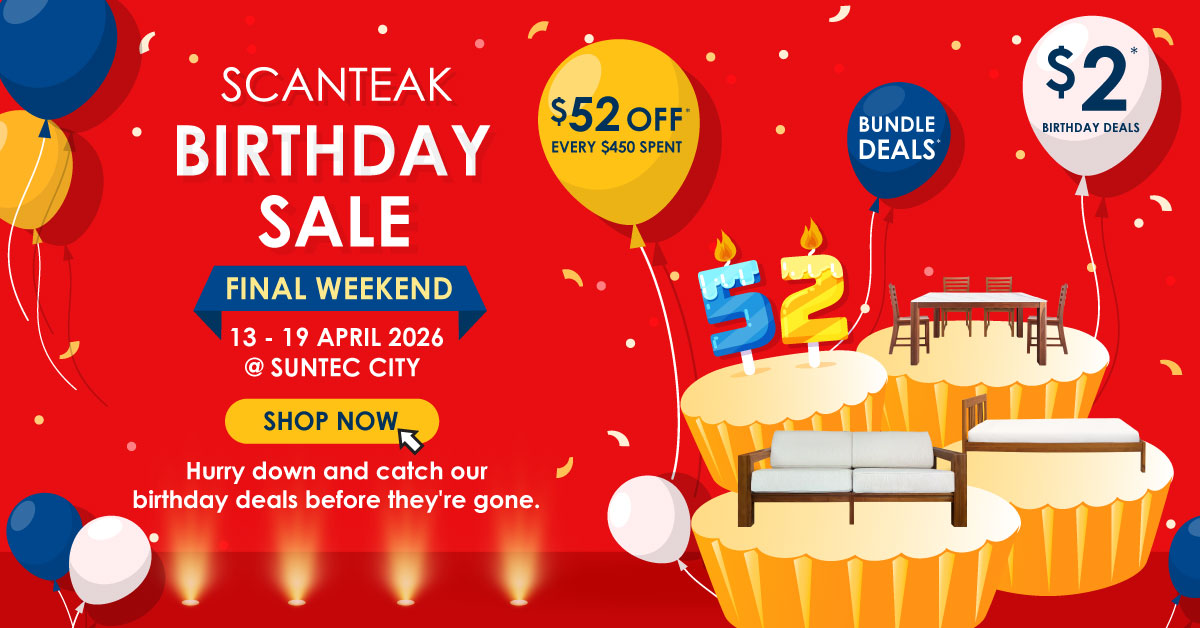 Enjoy 🛋️$52 off every $450 spent on regular-priced furniture and save up to$867 on sofa covers— available only in our showrooms. 🌳 Plus, enjoy teak deals from as low as $49 and discover even more exclusive offers in store! Don’t wait until the last minute — more selections await in store!